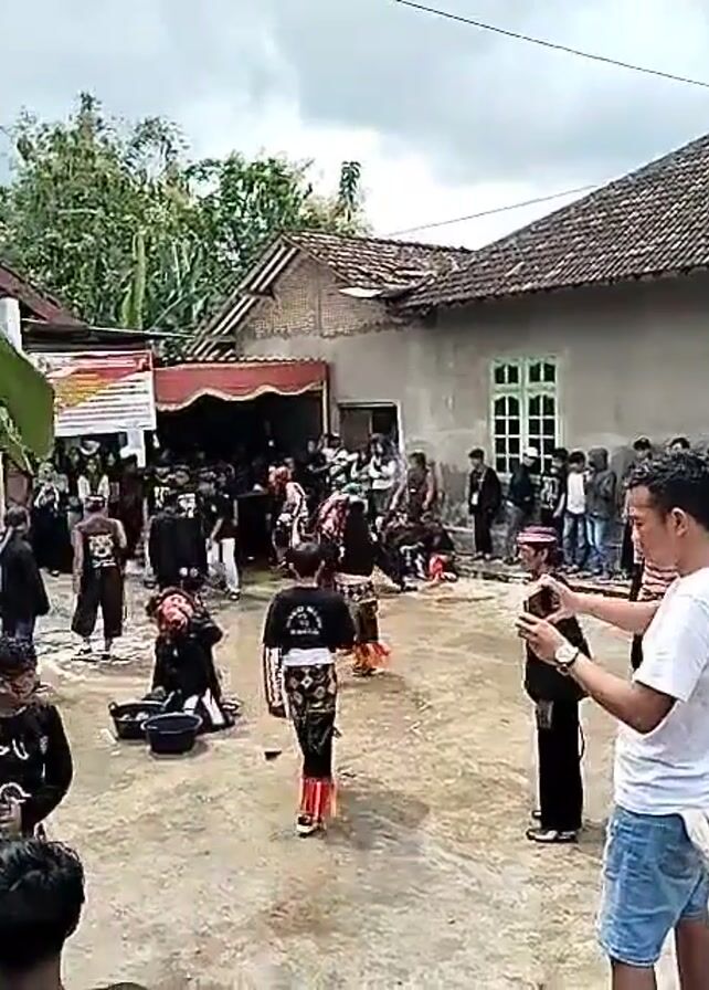 The video depicts a cultural performance taking place in an outdoor courtyard