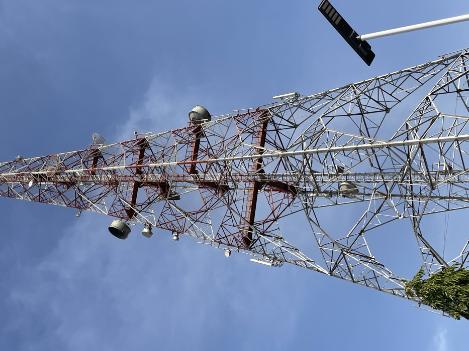 - "The image displays a tall, self-supporting lattice telecommunications tower located in Jos, Nigeria, viewed from a low-angle perspective against a clear blue sky with sparse white clouds" by FM-ebnZg1, licensed under CC BY 4.0