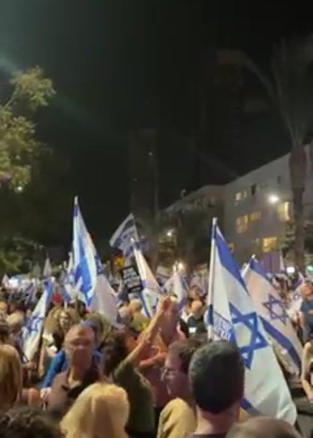 - "A night time view of a large crowd of people waving Israeli flags" by FM-mfRp53, licensed under CC BY 4.0