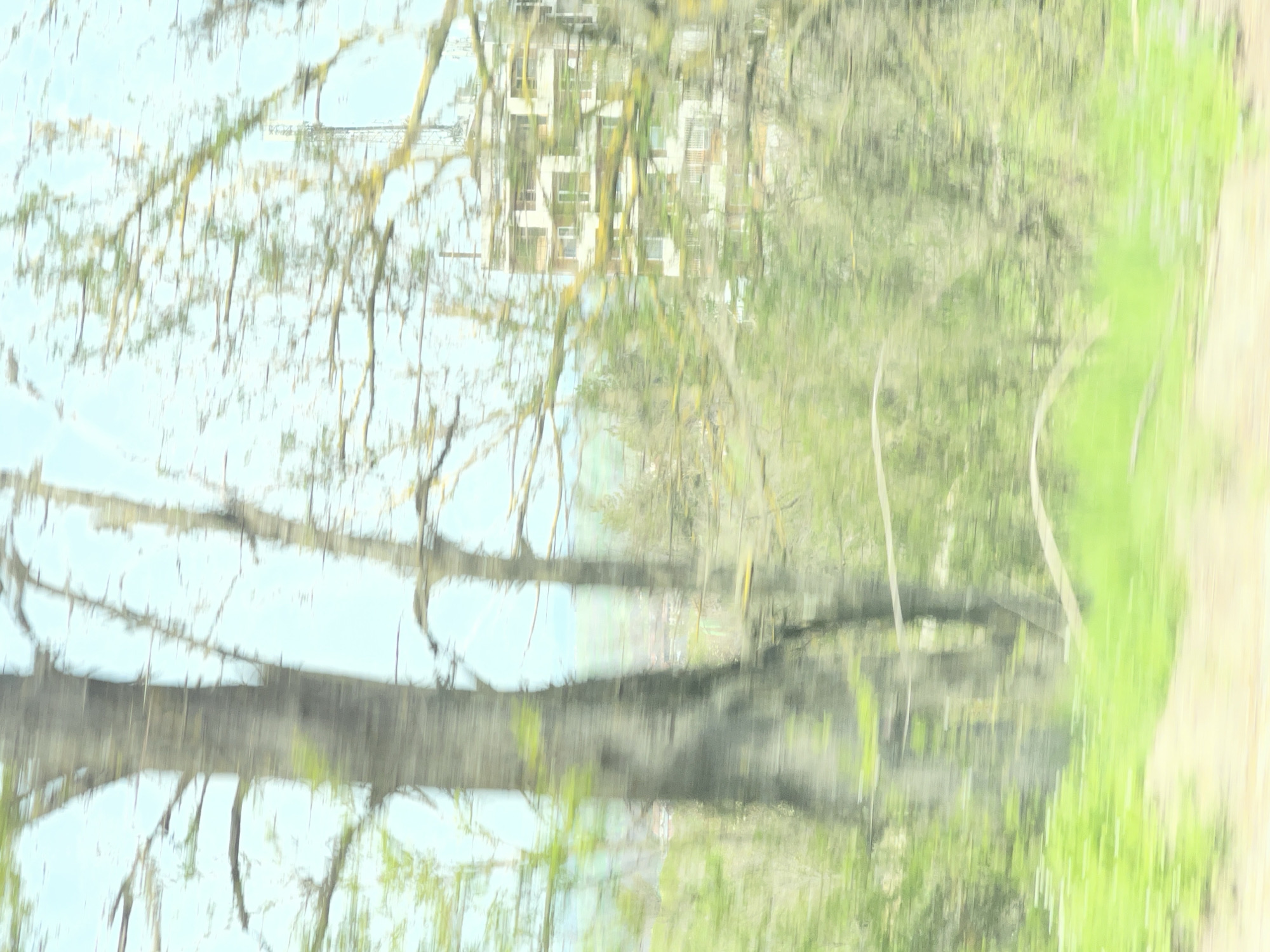 n upside-down reflection of a building and trees in water. The location cannot be determined from the image alone.