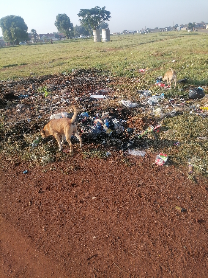 - "Two dogs scavenge for food amidst a large pile of trash in a field" by FM-RMAVJ2, licensed under CC BY 4.0