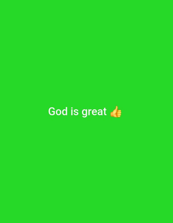 The image displays a solid, uniform green background. White text reading "God is great" is centered horizontally and positioned slightly above the vertical midpoint. To the immediate right of the text, a yellow-orange thumbs-up emoji is present. The visual content does not depict any discernible physical location in Unguwan Rimi, Nigeria, nor does it feature any people, subjects, objects, actions, interactions, or environmental elements beyond the described graphic components.