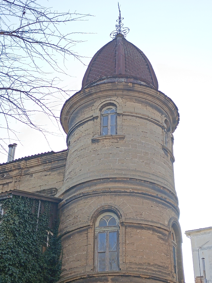 - "The image displays a weathered cylindrical stone tower, part of an architectural complex, located in Yevpatoriya, Ukraine" by FM-YVp303, licensed under CC BY 4.0
