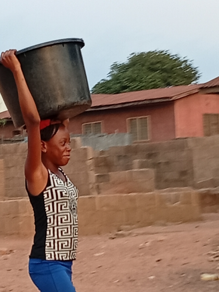 - "An adult female is depicted outdoors in Gboko, Nigeria, walking on an unpaved reddish-brown dirt path" by FM-pinCd2, licensed under CC BY 4.0