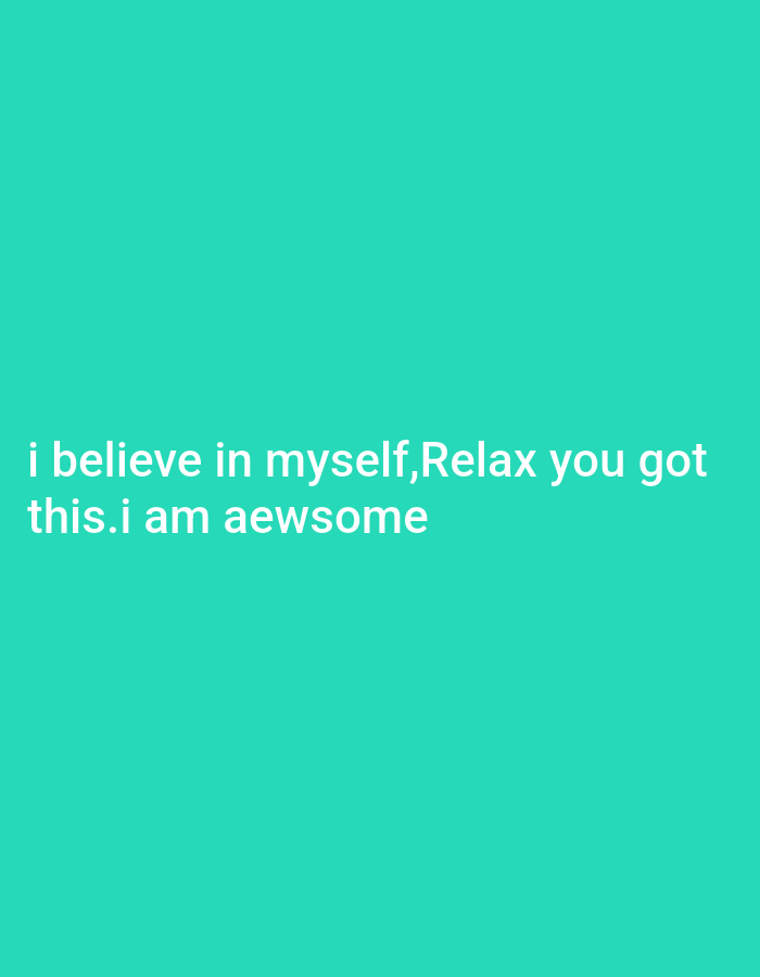 A cyan background displays the text "i believe in myself, Relax you got this. i am aewsome." The font appears simple and sans-serif. The text is light in color and contrasts with the background. Grammatical errors are present; "awesome" is misspelled as "aewsome".