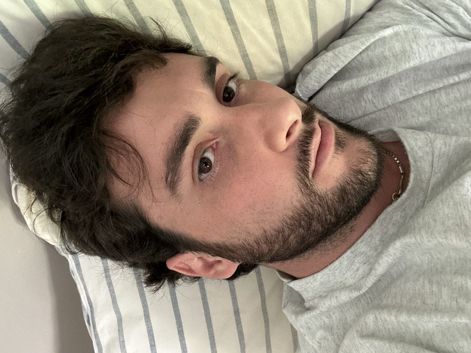 - "A close-up, high-angle image depicts an adult male lying on his back on a striped pillow, located within a residence in Lo Barnechea, Chile" by FM-wrSCM2, licensed under CC BY 4.0