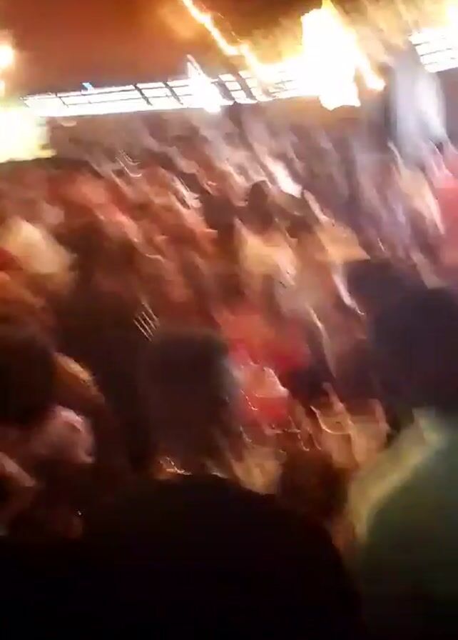 crowded, dimly lit indoor space, likely a club or bar, with a large group of people dancing