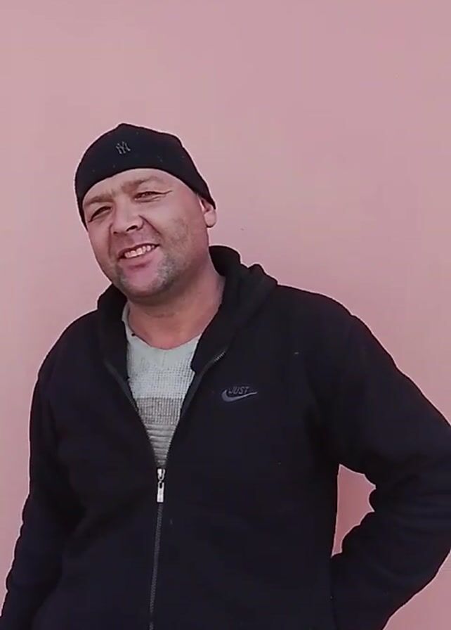 A medium shot shows a man standing in front of a plain pink wall. He wears a black beanie, a black zip-up hoodie with a Nike logo, and a gray shirt underneath. He has a slight smile and is looking directly at the camera. In the beginning, he says a word, then starts to laugh. He then says another phrase. He has his hand on his hip and brings out a cigarette to smoke.