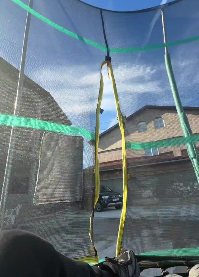 The video is shot from inside a trampoline