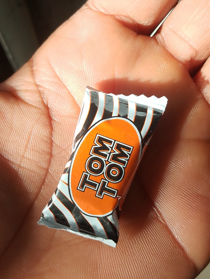 - "The image displays a single Tom Tom brand candy wrapper held open in the palm of a person's hand, presumably in the city of New Nyanya, Nigeria" by FM-4qtZq2, licensed under CC BY 4.0