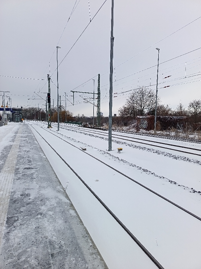 - "The image depicts a snow-covered railway station platform and multiple tracks in Leipzig, Germany, under a uniformly overcast sky" by FM-rFWs12, licensed under CC BY 4.0