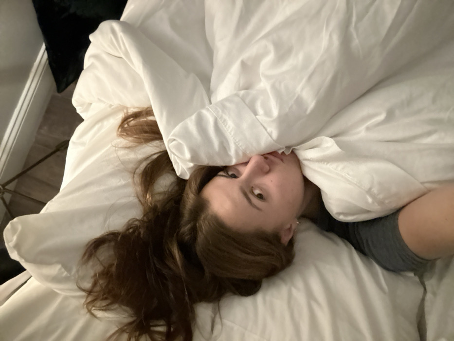 - "An overhead close-up image depicts a young female individual lying on her back in a bed within an interior setting, identified as Boston, United States" by FM-8c0As1, licensed under CC BY 4.0