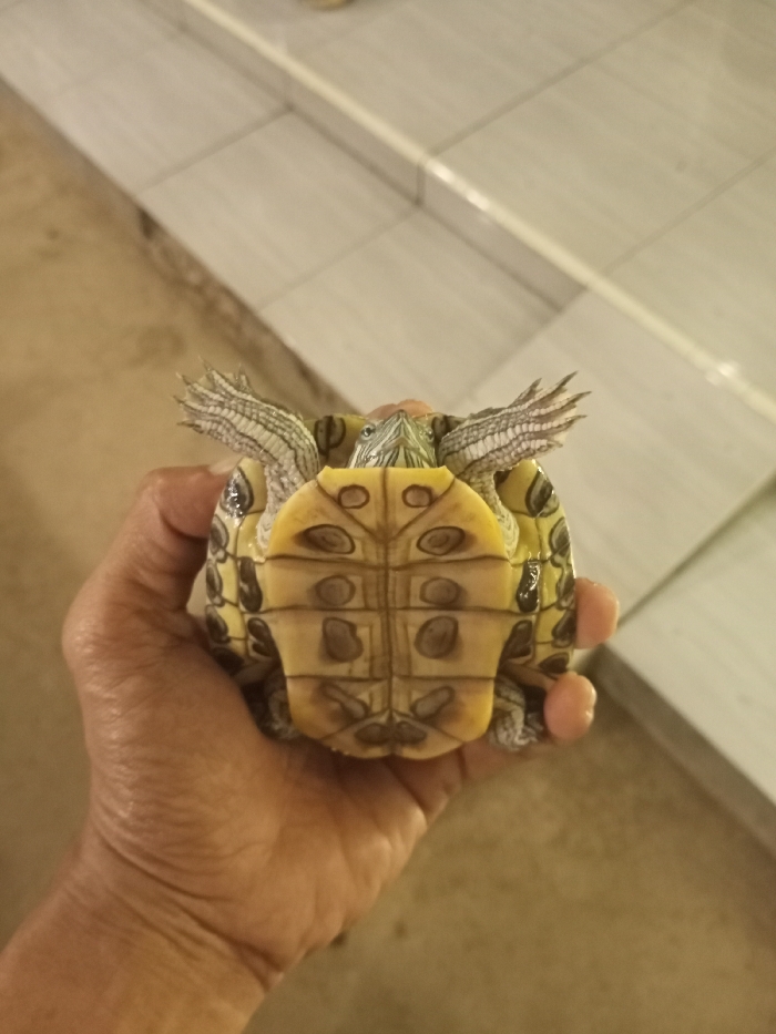 - "A human hand, skin tone brown, is observed securely holding a small freshwater turtle inverted in the city of Kedung Dowo, Indonesia" by FM-cHJi83, licensed under CC BY 4.0