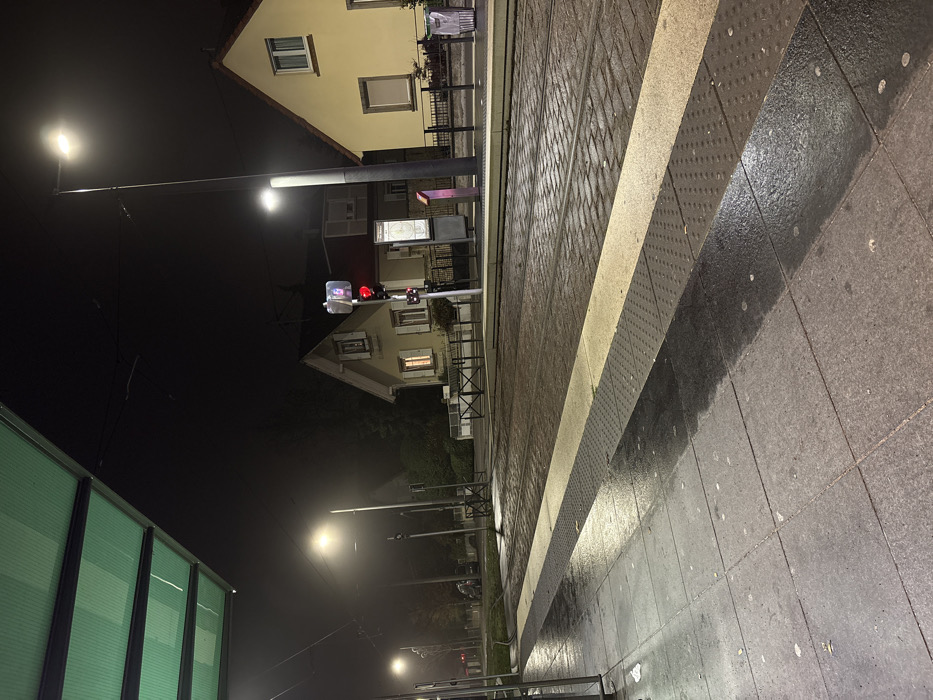 - "A nighttime shot reveals a train platform on the right, displaying varying textured surfaces" by FM-Az2kA2, licensed under CC BY 4.0