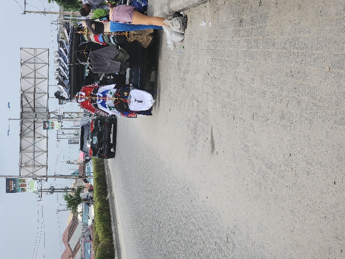 The image captures a roadside scene on an overcast day in Lagos, Nigeria