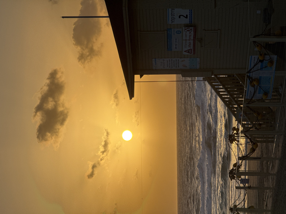 - "A beach scene at sunset features a lifeguard station on the right, overlooking the ocean" by FM-bbBQ42, licensed under CC BY 4.0