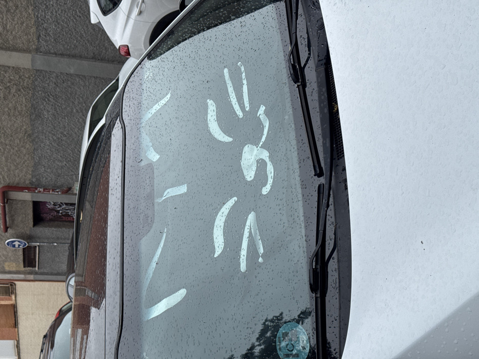 - "The image displays the front windshield and a portion of the hood of a light-colored vehicle, likely white or silver, parked on an urban street" by FM-5V1Jf1, licensed under CC BY 4.0