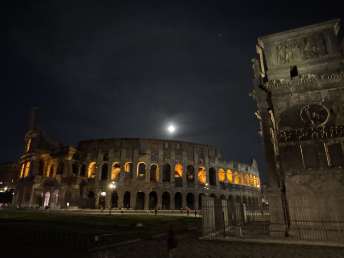 - "Illuminated by a full moon, the Colosseum in Rome stands grandly amidst the night" by FM-IdNfF2, licensed under CC BY 4.0