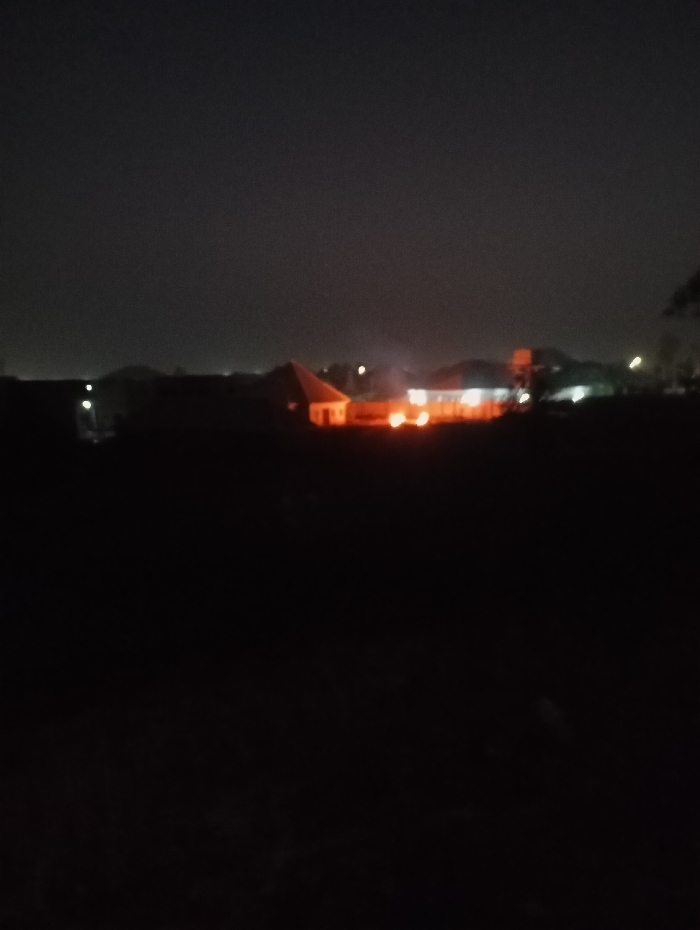 The image presents a distant, nighttime view of a scene in Bar Gada, Nigeria