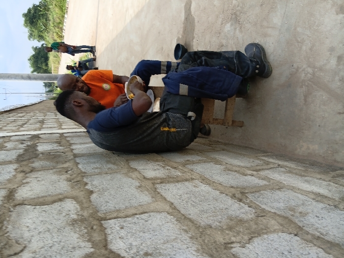 The scene is set outdoors in Shagamu, Nigeria, alongside a textured concrete block wall