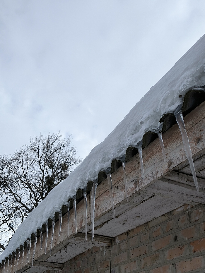 - "A low-angle shot shows icicles hanging from a roof covered in a thick layer of snow" by FM-dWhzM2, licensed under CC BY 4.0