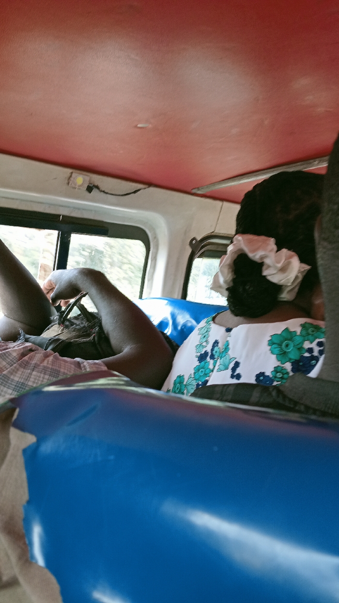 The image depicts the interior of a vehicle, likely a public transport van or matatu, situated in Matulo ward, Kenya
