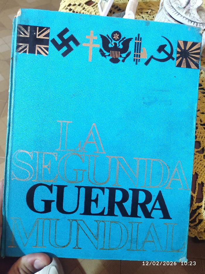 - "A cyan-colored hardcover book titled "LA SEGUNDA GUERRA MUNDIAL" (The Second World War) is depicted in a close-up, slightly angled view" by FM-wI3Qi1, licensed under CC BY 4.0