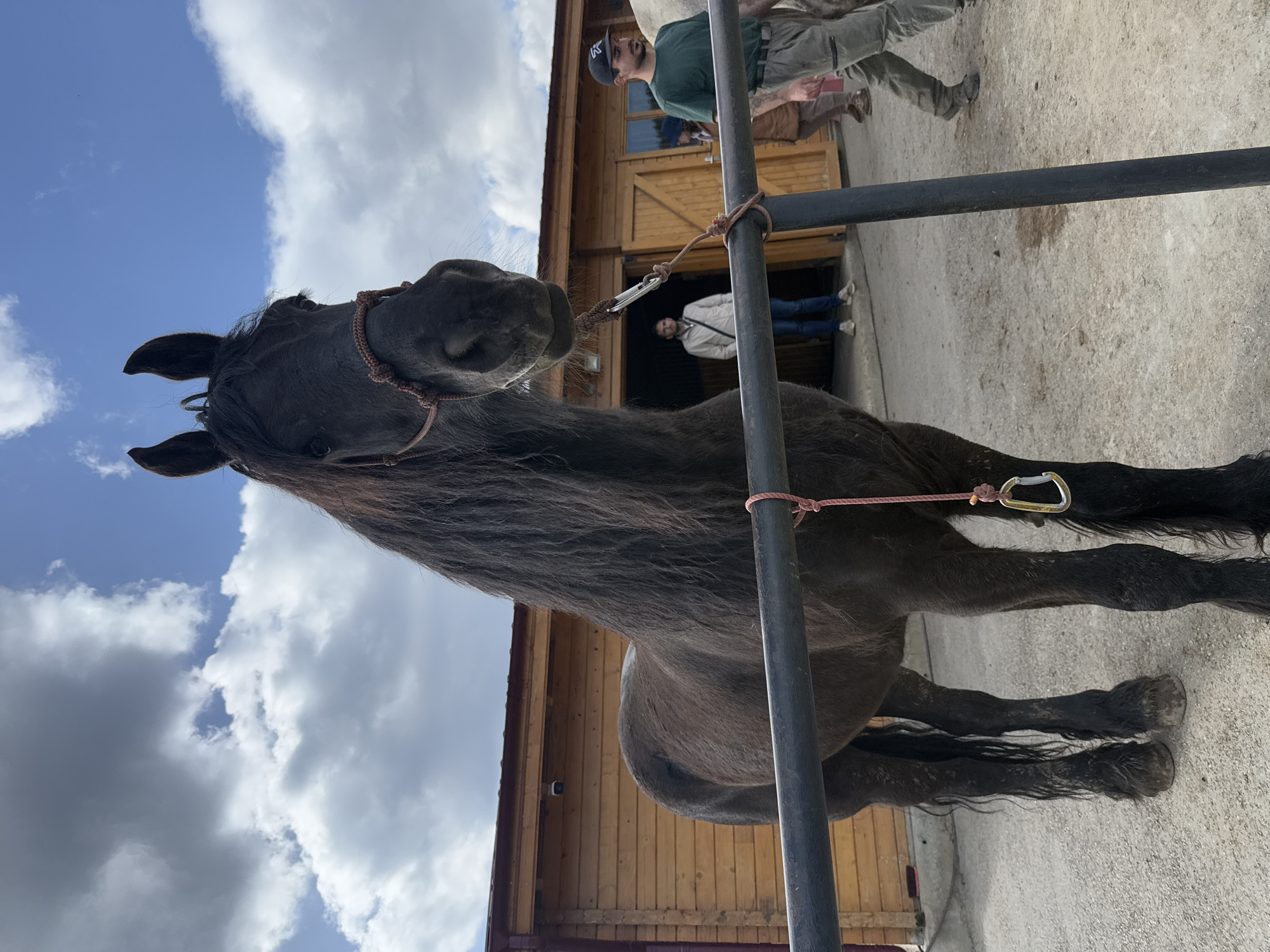 - "A horse is tied to a metal post outside a wooden building" by FM-lXJx72, licensed under CC BY 4.0