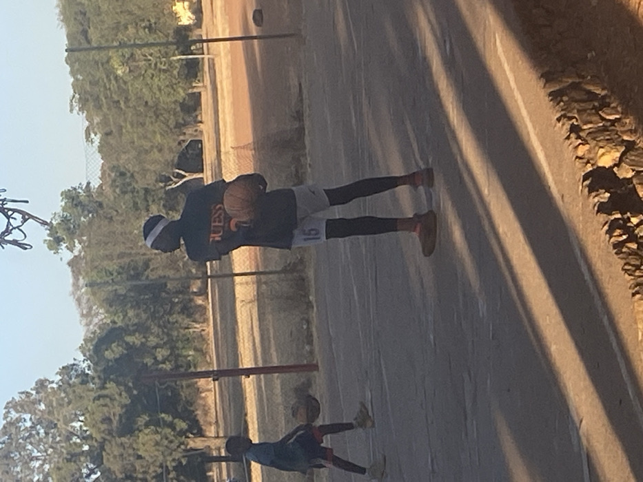 The image depicts an outdoor basketball court scene in Bukuru, Nigeria