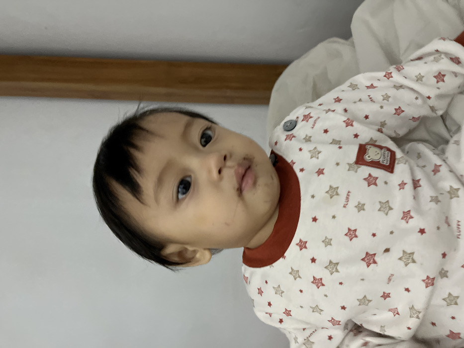 - "An indoor, eye-level photograph captures an East Asian toddler, estimated to be between 12 and 24 months old, looking directly at the camera" by FM-Vx7KT2, licensed under CC BY 4.0