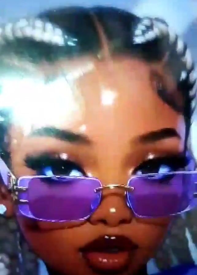 two animated characters. The first character has pink hair, a white shirt, and is applying lipstick. The second character is wearing purple sunglasses and has blonde braids. Both characters are shown from the chest up. The animation style is reminiscent of a drawing.