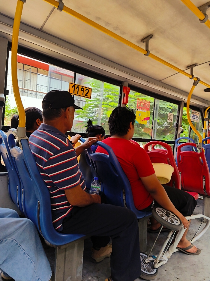 - "The image depicts the interior of a public transit vehicle in Ate, Peru, with passengers seated" by FM-31Mos1, licensed under CC BY 4.0