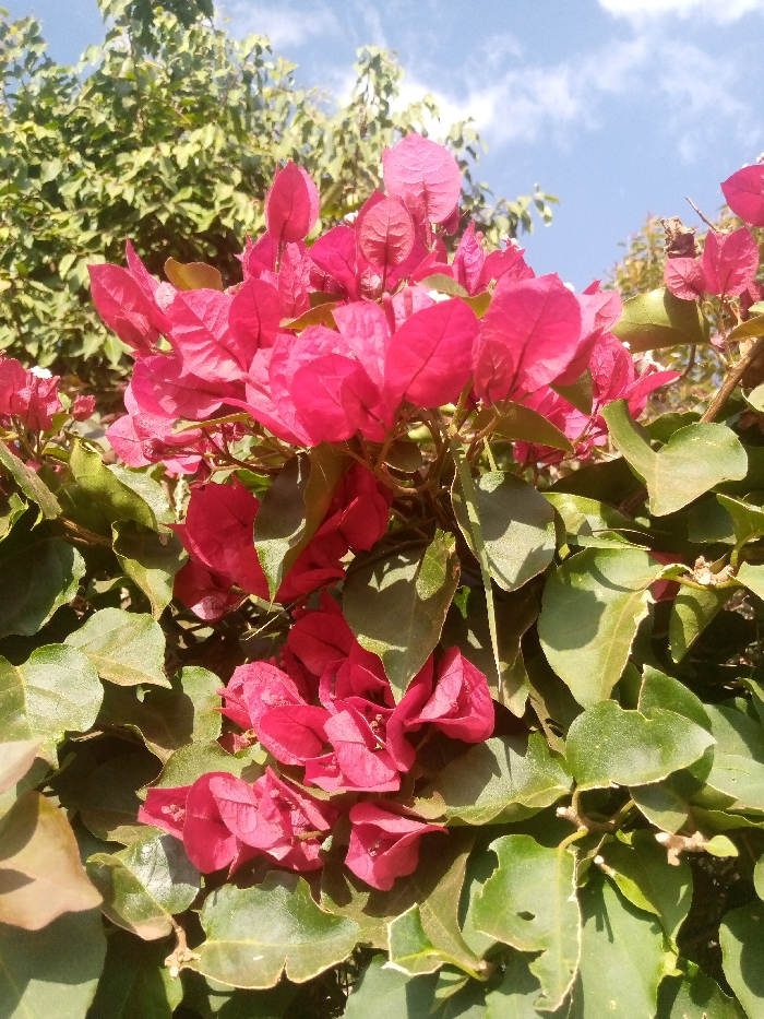 - "The image displays a close-up, upward-angled view of a bougainvillea plant with prominent fuchsia-colored bracts and deep green leaves, located in Limuru, Kenya" by FM-LCn2d2, licensed under CC BY 4.0