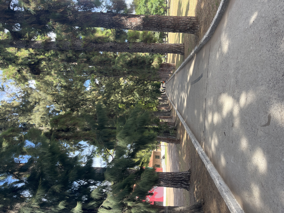 - "The image depicts a straight, paved pathway flanked by a double line of mature conifer trees within a park-like setting in Quilmes Oeste, Argentina" by FM-r36Gp1, licensed under CC BY 4.0