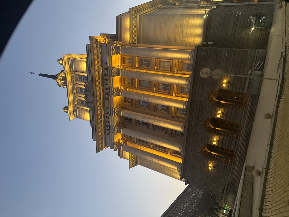 - "An outdoor, low-angle shot captures the brightly illuminated National Assembly building in Sofia, Bulgaria, at twilight or early evening" by FM-jMD1m1, licensed under CC BY 4.0