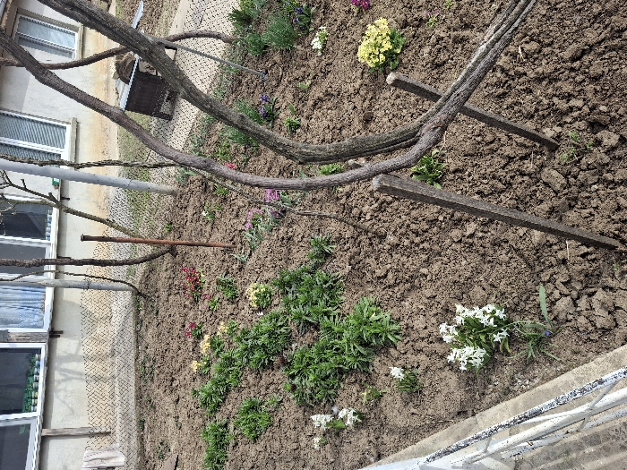 - "The image depicts a residential garden in Mokresh, Bulgaria, featuring recently tilled dark brown soil with various flowering plants and young green vegetation" by FM-3x2sM2, licensed under CC BY 4.0