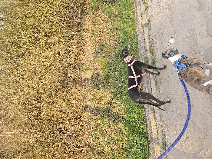 - "An outdoor scene in Konz, Germany, depicts two dogs on a light-colored paved surface next to a grassy embankment" by FM-012eU2, licensed under CC BY 4.0