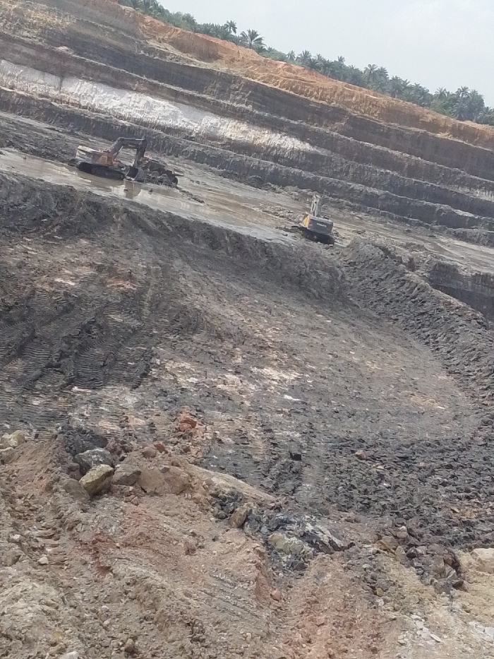 The image displays an open-pit mining operation in Hoche, Nigeria
