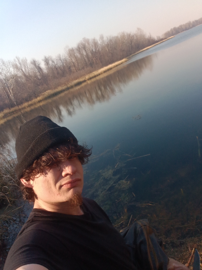 - "A person wearing a black beanie and a black t-shirt sits near a lake" by FM-j8lDL2, licensed under CC BY 4.0