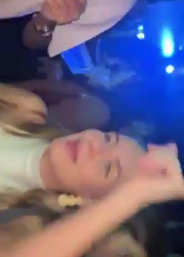 The video appears to be filmed in a crowded, dark club setting with flashing colored lights