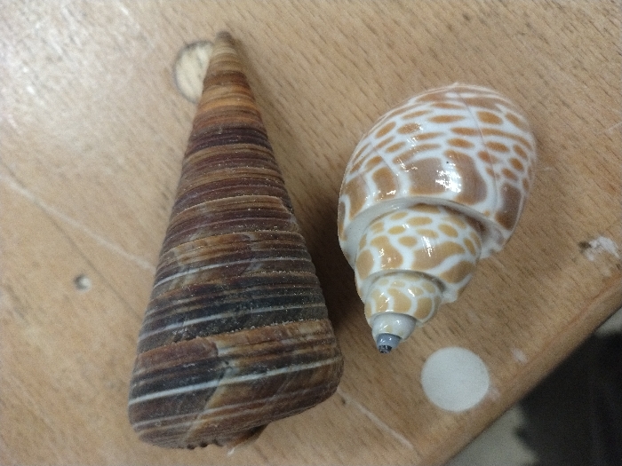 - "The image depicts two distinct seashells resting on a light brown wooden surface within the city of Leudelange, Luxembourg" by FM-gpHAg1, licensed under CC BY 4.0