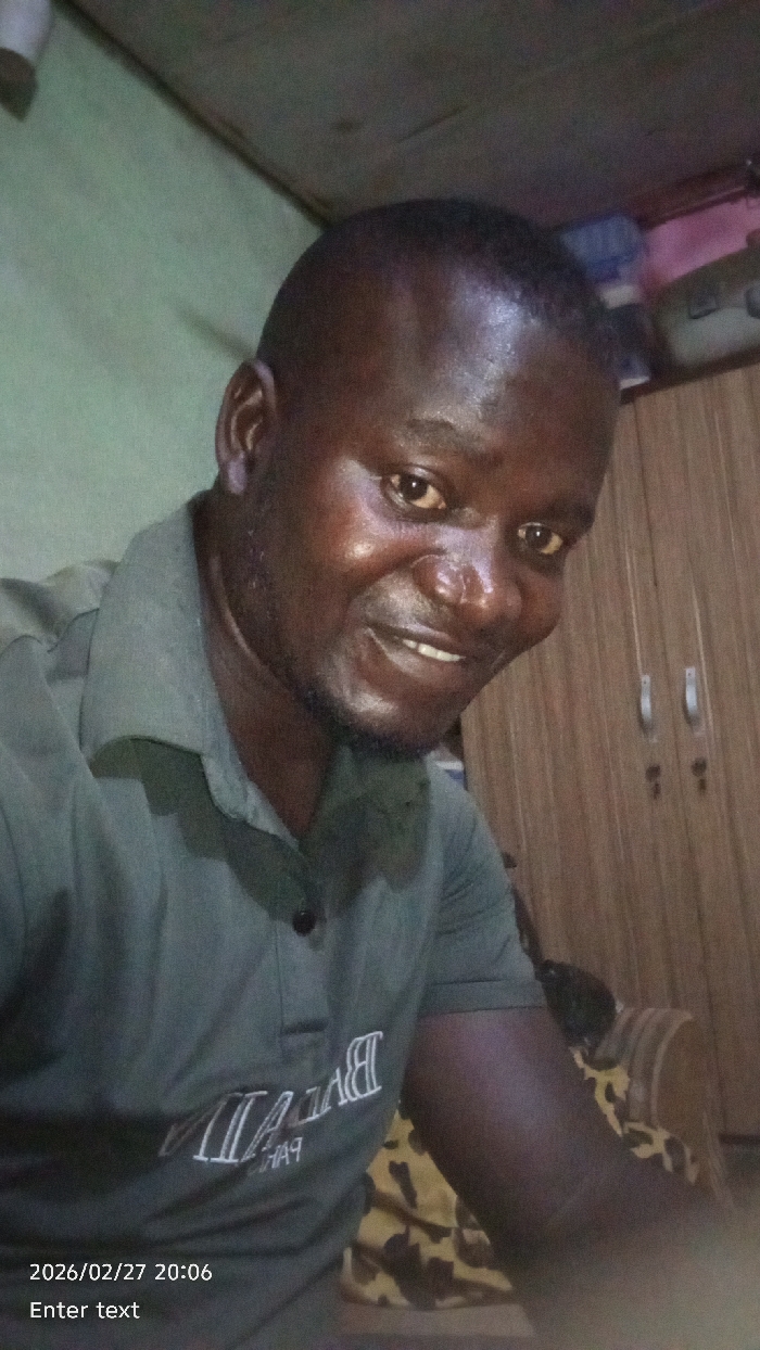 A male individual is depicted in a close-up, chest-up portrait, presumably a selfie, taken indoors in Gwagwarwa, Nigeria