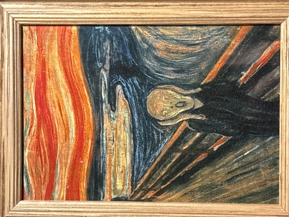 - "The image displays a framed depiction of Edvard Munch's "The Scream," located in Meistratzheim, France" by FM-W9mO23, licensed under CC BY 4.0