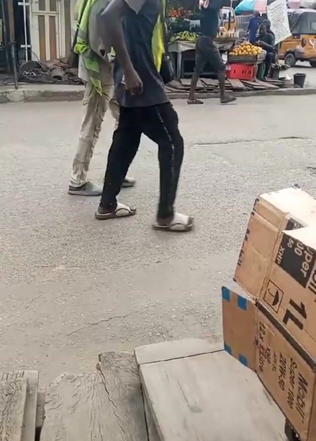 The video, shot from a low angle, captures a street scene on what appears to be a busy day