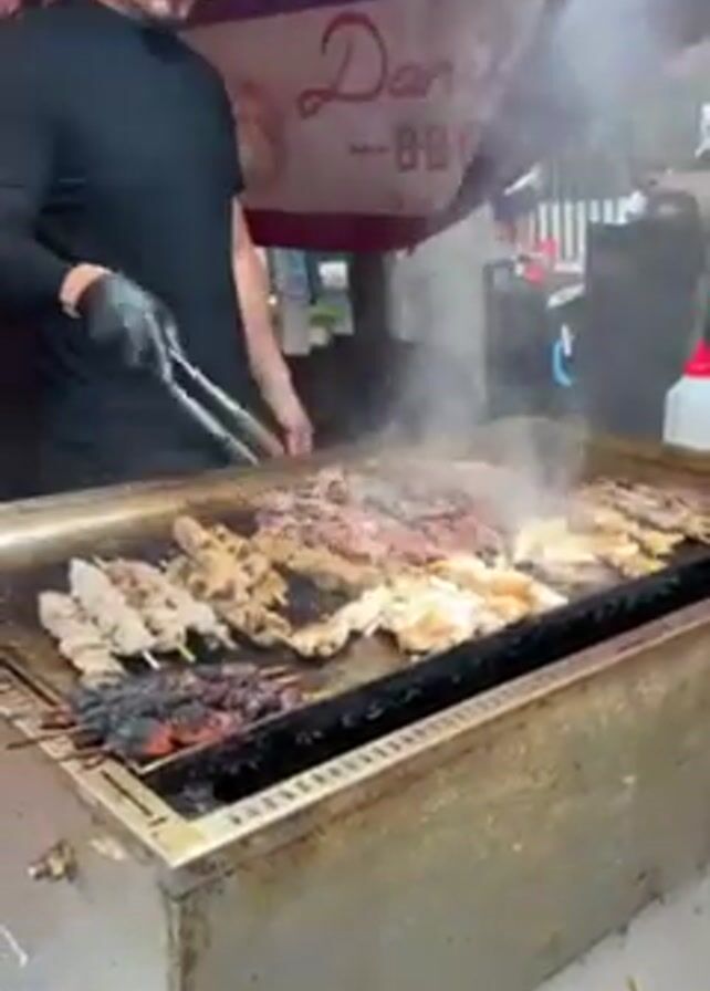 - "A man is seen grilling meat skewers on a large, flat grill" by FM-P0ePn2, licensed under CC BY 4.0