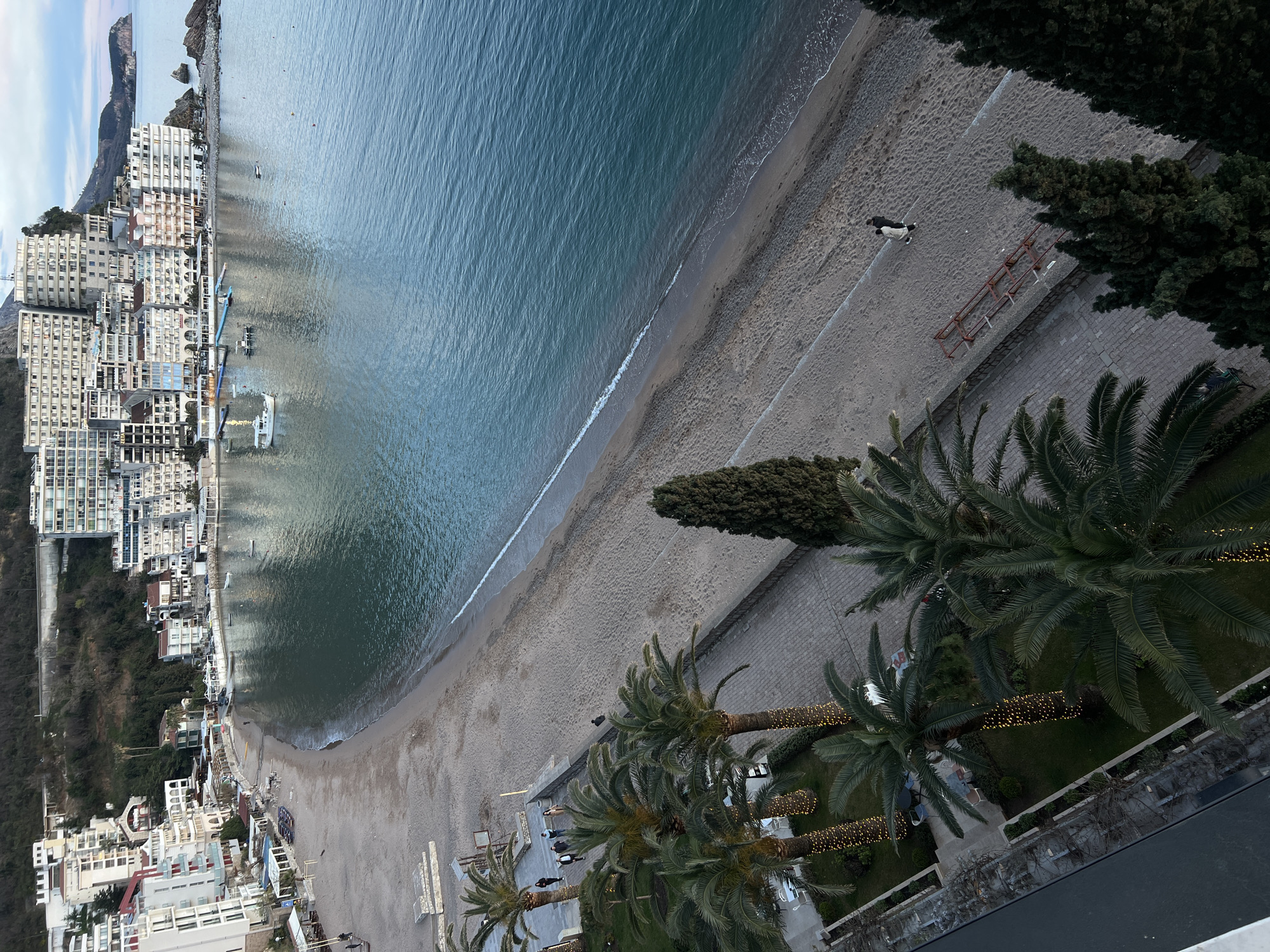 - "A high-angle view shows a beach, the Adriatic Sea, and buildings in Rafailovići, Montenegro" by FM-w8lZg1, licensed under CC BY 4.0