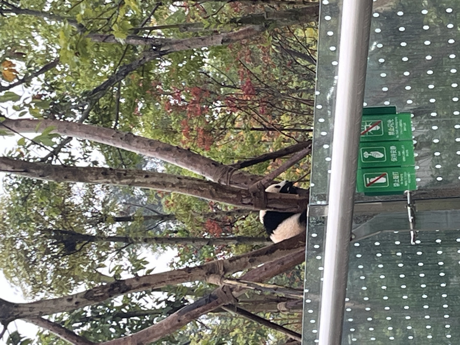 This image forensically depicts a giant panda within an outdoor enclosure, likely at the Chengdu Research Base of Giant Panda Breeding in Chengdu, China