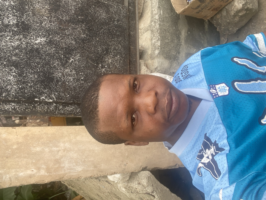 In Ojo, Nigeria, a medium shot captures an adult male with dark skin and a short haircut, directly facing the camera with a neutral expression