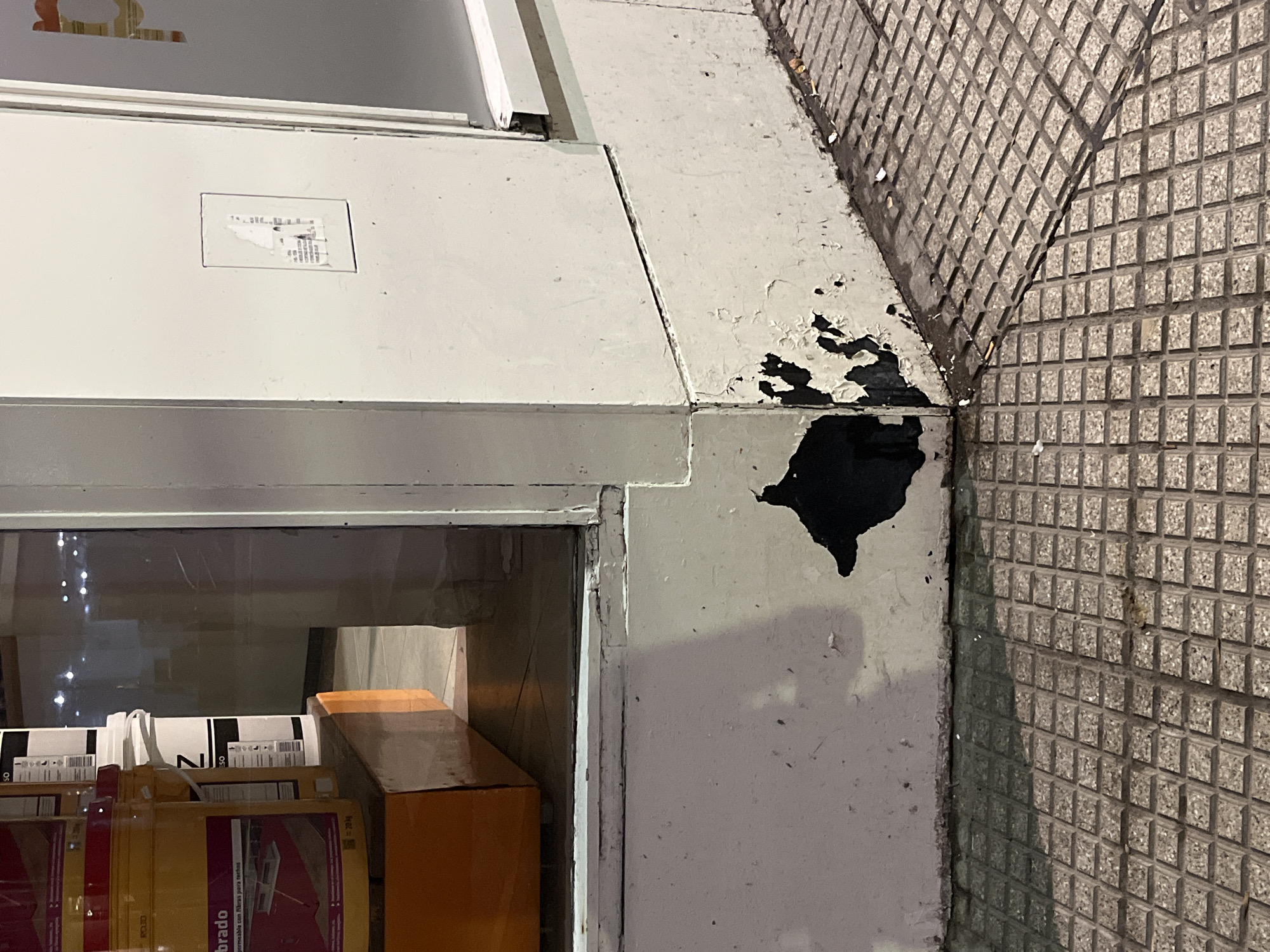 - "corner of a building, likely an entryway or shopfront, with a tiled sidewalk abutting the building" by FM-CMZiJ3, licensed under CC BY 4.0