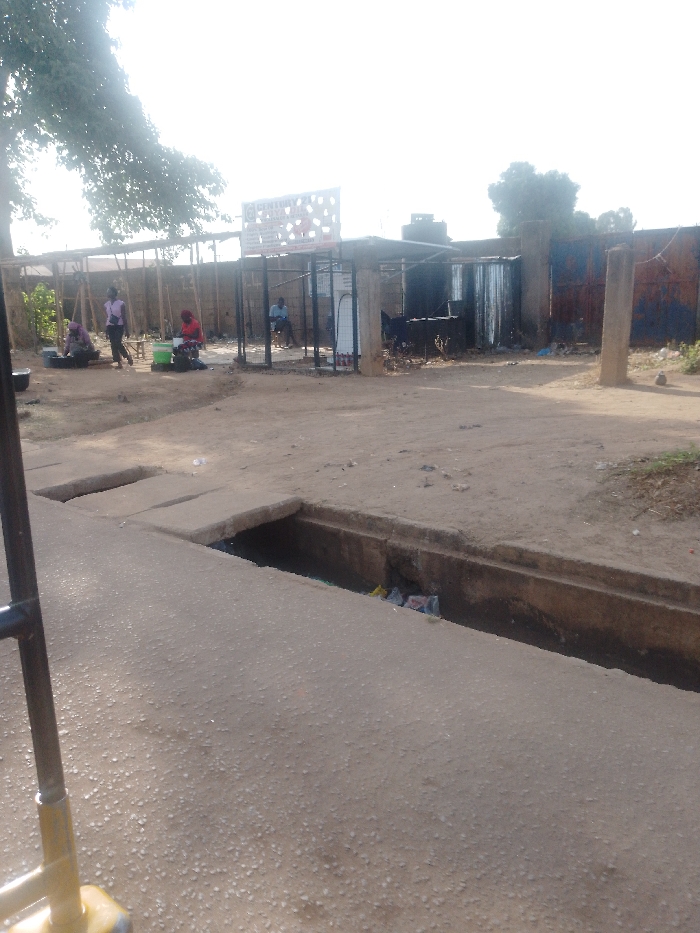 The scene depicts a daylight street or market area in Sabon Tasha, Nigeria